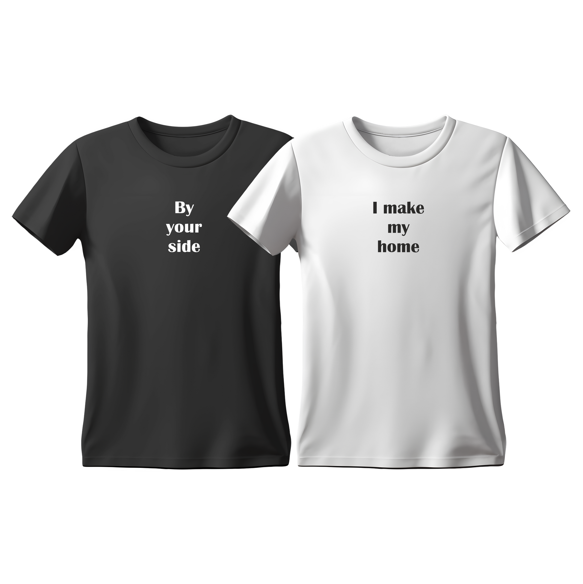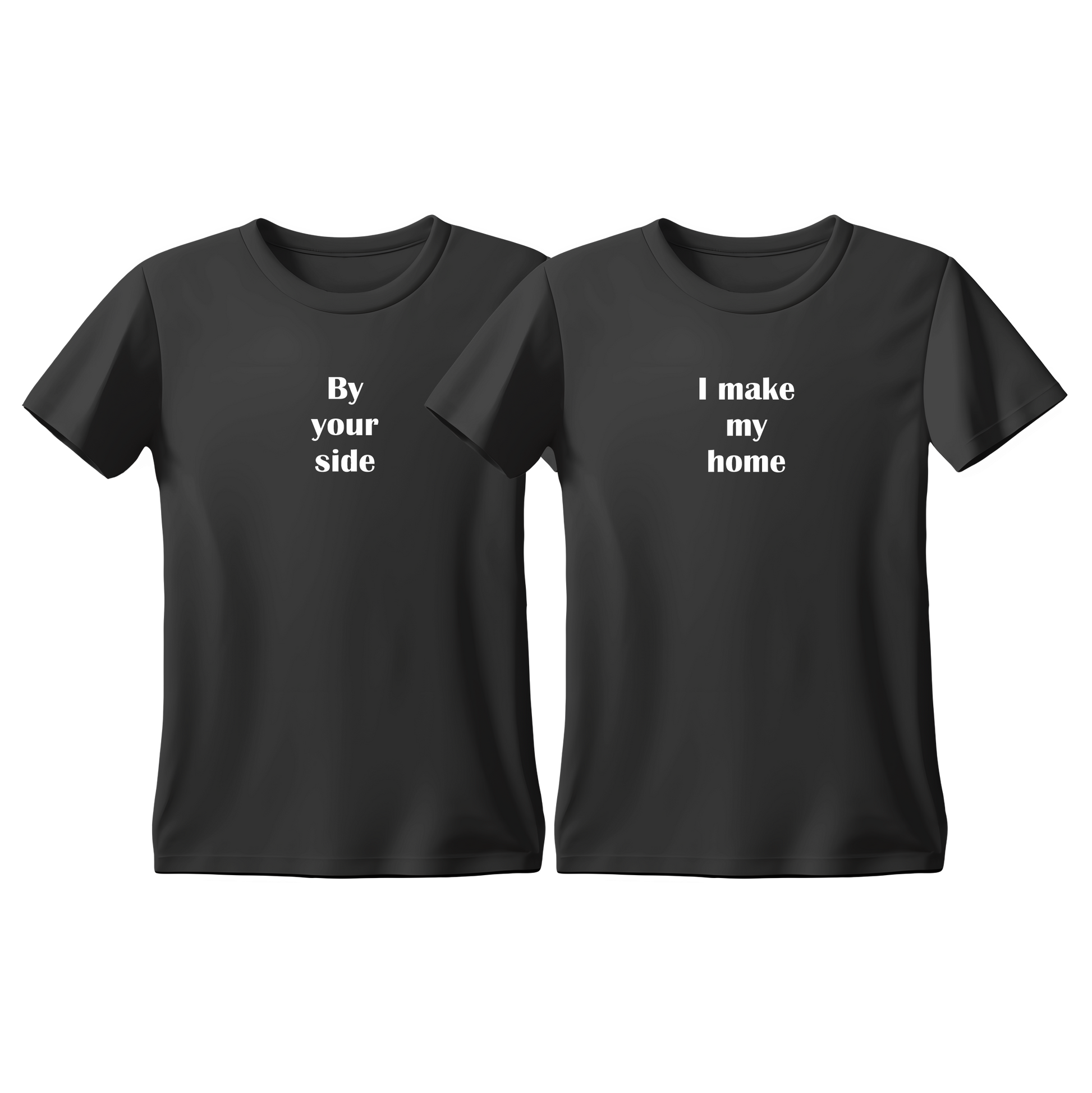 Home is not a place – it is a person. This set is for couples who know that wherever they are, 'home' is where their man is. With one saying 'By your side' and the other 'I make my home' this set is the ultimate statement of love and devotion.