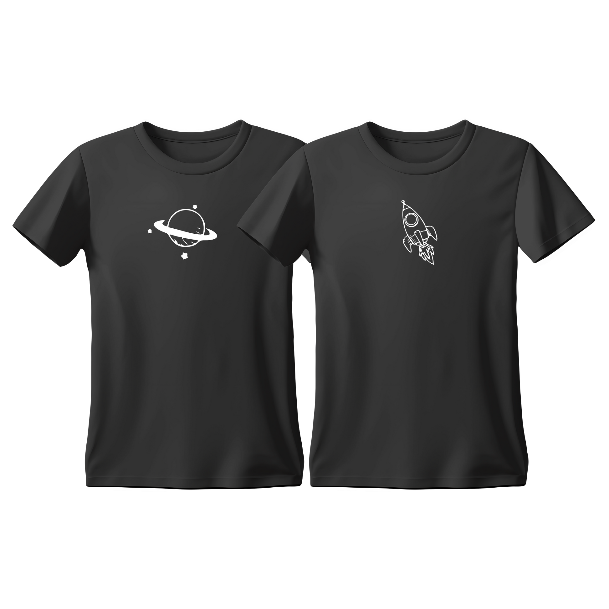 Για τα ζευγάρια που δεν βάζουν όρια στην αγάπη και την περιπέτεια! Το ένα μπλουζάκι είναι γεμάτο πλανήτες, ενώ το άλλο είναι το διαστημόπλοιο που ταξιδεύει από τον έναν στον άλλον, εξερευνώντας το άπειρο. Ένα διασκεδαστικό και ρομαντικό σετ για εκείνους που ξέρουν ότι η σχέση τους είναι μια περιπέτεια γεμάτη νέα μονοπάτια και απέραντους κόσμους!