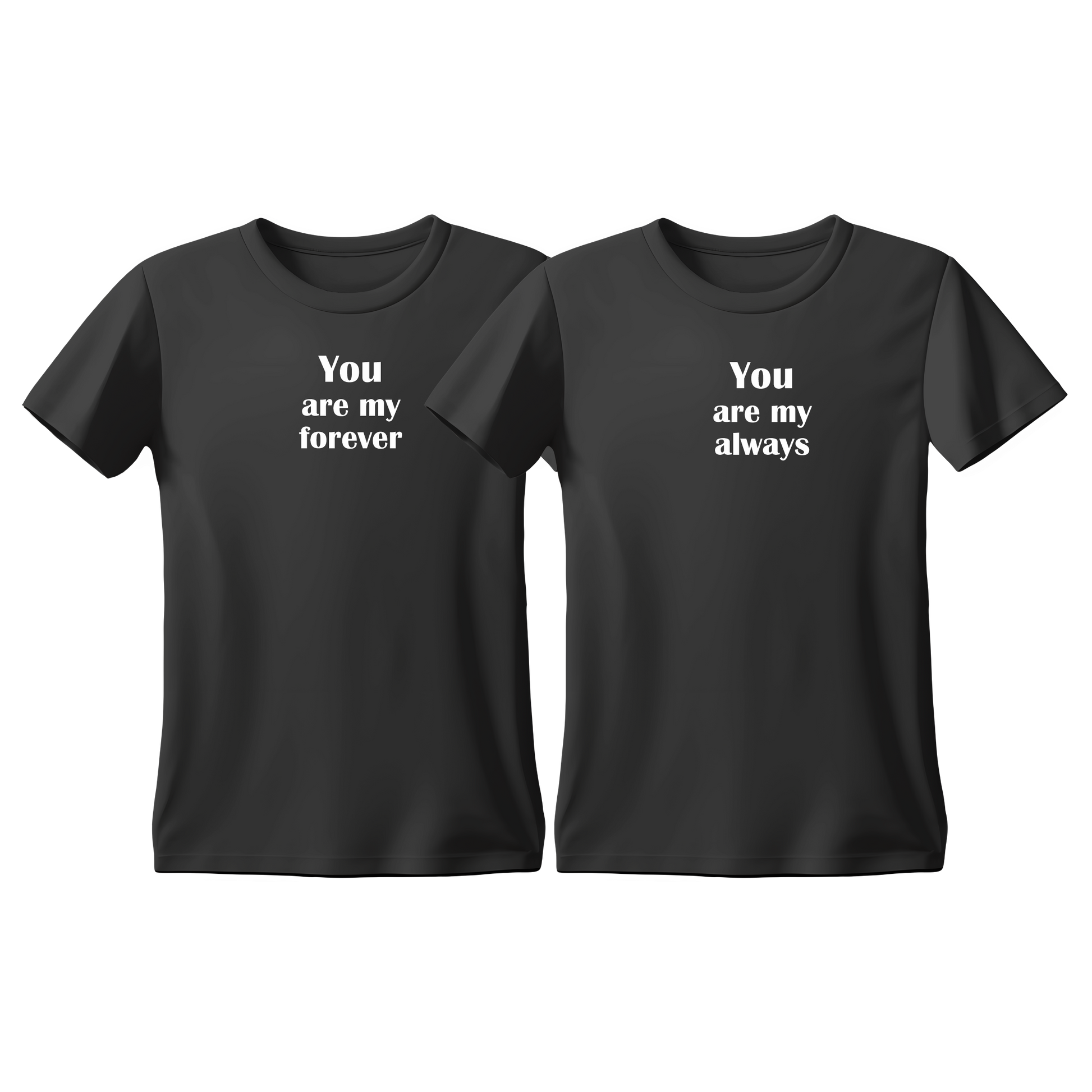 Για τα ζευγάρια που νιώθουν ότι η αγάπη τους είναι αιώνια και παντοτινή. Με τις φράσεις ‘You are my Forever’ και ‘You are my Always’, εκφράζετε την αφοσίωση και την υπόσχεση που κρατάτε ο ένας για τον άλλον. Ένας όμορφος τρόπος να πείτε ότι, όσο κι αν περνά ο καιρός, θα είστε πάντα δίπλα στο ταίρι σας!